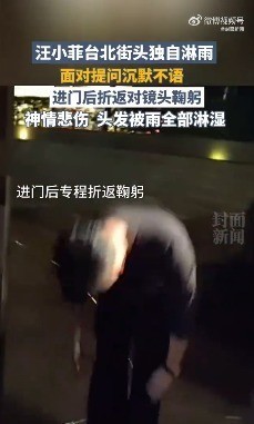 稍晚,台媒拍到汪小菲在台北街头独自淋雨,面对记者提问沉默不语。汪小菲抵达家中后,又折返面对镜头90度鞠躬。