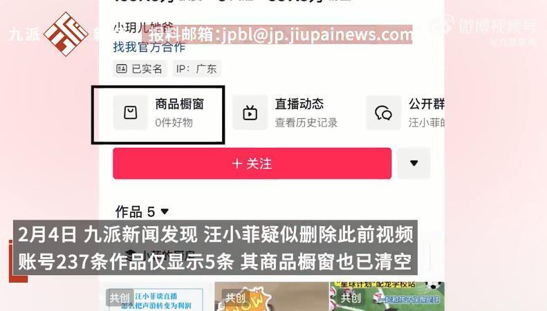 2月3日,中国台湾女演员、歌手、主持人徐熙媛(大S)被证实在日本旅游期间因流感引发肺炎,不幸离世,年仅48岁。2月4日,记者,汪小菲疑似删除此前视频,账号237条作品仅显示5条,其商品橱窗也已清空。